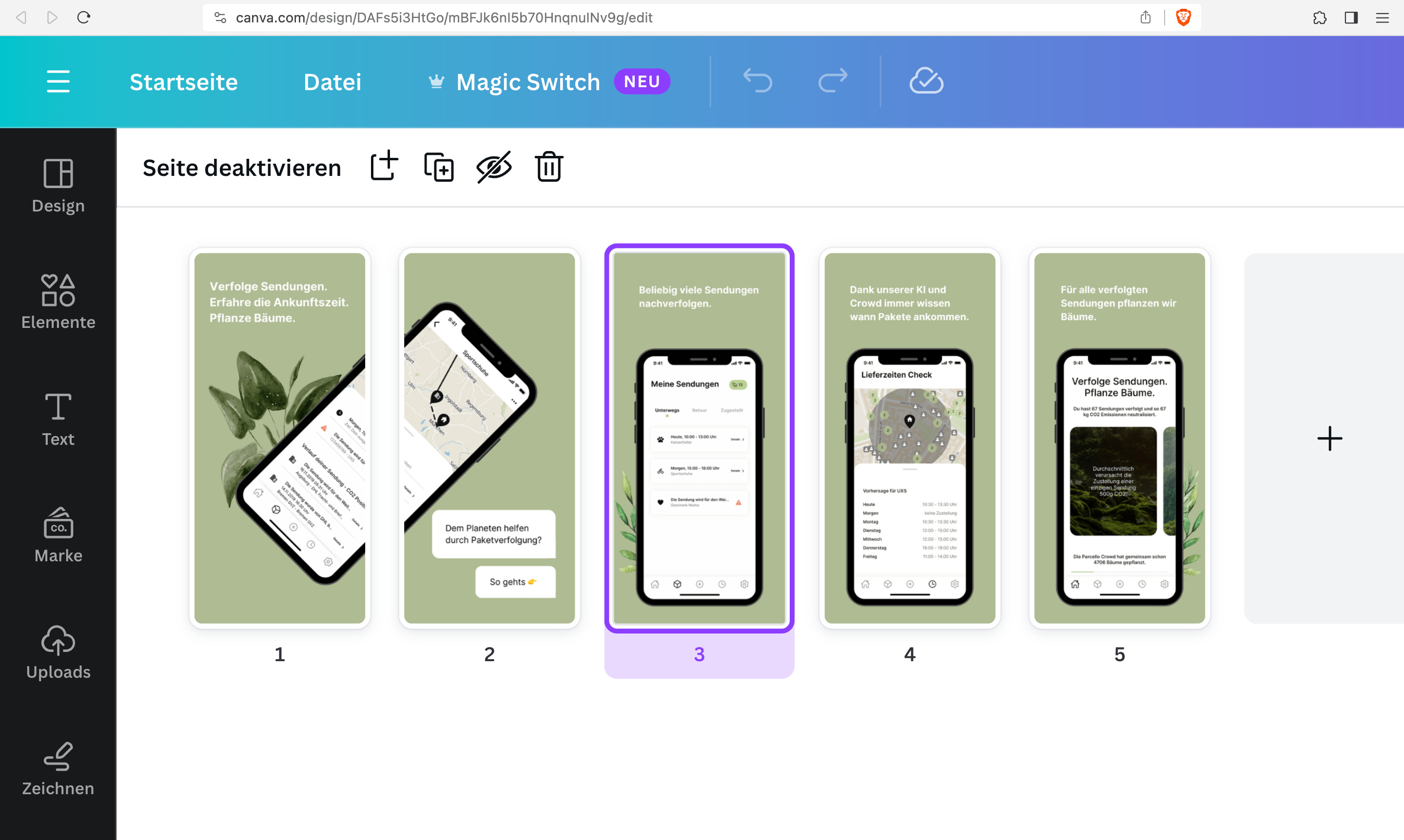 Um dann die Vorschau-Bilder für die App-Stores zu erstellen, nutzen wir meist wieder Canva bzw. Canva im zweiten Schritt, um schnell auch mal die Größen zu ändern, denn besonders Apple ist hier ziemlich fordernd, was die einzelnen Vorschau-Bilder für unterschiedliche Geräte angeht. Das Problem: das Seitenverhältnis ist auf jedem Gerät wieder anders und du brauchst immer passende Vorschau-Bilder und ja, mit Canva geht es dann mit wenigen Klicks, was in Photoshop dann doch ein ziemlicher Hustle war.