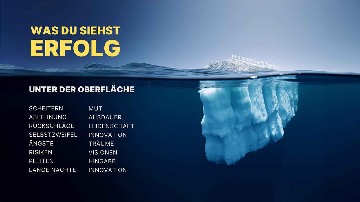 Was wir von anderen Menschen wahrnehmen, ist meist nur die Spitze des Eisbergs, hinter dem aber oft jahrelange Übungen und Rückschläge stehen. Dann denken wir uns selbst, wenn wir dann diese Spitze sehen, oh, das haben wir nicht, das Zeug, da sind wir nicht gut genug dazu. Aber wir vergessen darüber, dass diese Person einmal an genau der gleichen Stelle stand, wo wir gerade stehen.